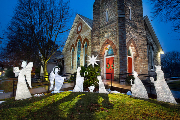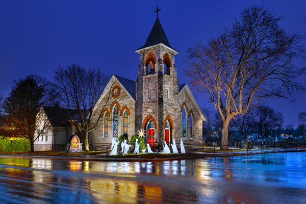 I passed this scene in a local town during the day and decided to make a return trip that evening. I shot both these images the same evening and the bottom image was no problem but when I crossed the road to get the wider shot, I knew it was going to be a challenge. This Church is along a major highway with heavy traffic a good part of the day. Add to that there is a second road coming out on the right. So to offer a glimpse into my setup, first my tripod gets setup across the street with my camera and my Camranger wifi box attached to it and also the flash signal sender. I am across the street moving around the Church with my flash and my tablet which controls all my camera settings. I can set shutter speed, white balance, f-stop, bracketing etc. So I set everything on my tablet which sends a wifi signal telling my camera what I want things set at. Now I simply aim the flash where I want extra light, hit the fire button on my tablet which fires the shutter which in turn fires the flash trigger on my camera and my flash fires at the exact moment the camera fires. I lit the steeple, the tree, the front and side, all while trying to aim the flash properly, and also glance at my camera to make sure there is an opening so a car is not directly in front of the camera as it fires. It may sound complicated but it is not and it expands what you are able to do by being at your subject and not your camera.