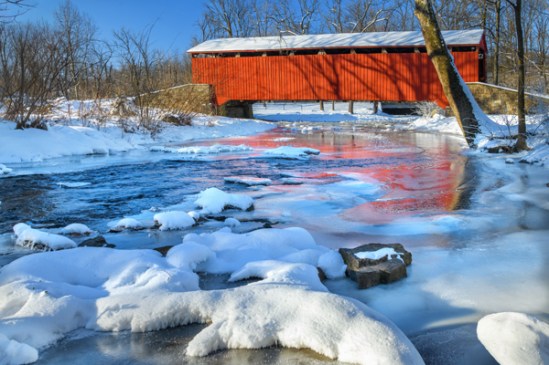 This past weekend we got a little over 13 inches of snow plus another inch or two of sleet. Temperatures are staying put right now hovering anywhere from almost zero to a balmy twenty. This storm was not the prettiest because it was very fluffy and did not cling to anything. This covered bridge was taken in the early morning when it was around 15 degrees and as you can see parts of the stream are already frozen. A possible 2nd nor’easter this coming weekend seems to be heavily favored at this point. Looks like its time for more bread and milk. We had one day where travel was iffy but to watch people stock up you would think we were going to be hunkered down for weeks!