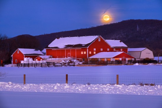 I shot this last night while kneeling in the snow in the middle of a farm field. I used an app called the Photographers Ephemeris which will show you were the sun, moon will rise and set. Due to user error I missed the moon rise location by a hundred yards, so I had to dash through the snow to get to the right alignment. A bonus was the farmers had lights on in the barns.