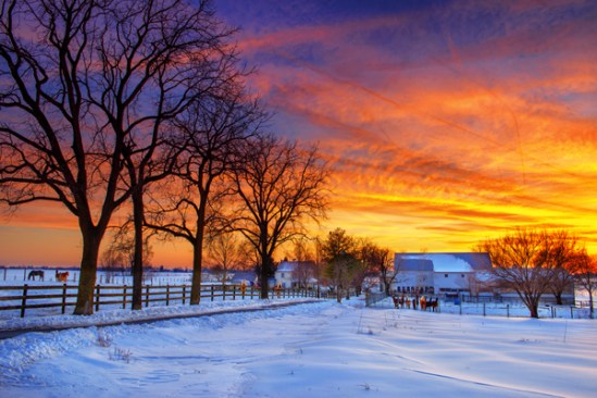 This image was taken last evening and despite being nowhere near the temperatures we had this past weekend, it ranked right up there with the most excruciating pain my hands ever experienced. Yesterday was much milder through the day so I got a bit complacent when I went out to shoot the sunset. I got safely pulled off into a snow pile along the road and then hiked across this farm field with camera, 2 lenses and tripod. I had a very thin pair of gloves on and till I was finished it was close to an hour standing out in the cold. I kept prolonging it because I wanted the interior lights to show up and I was too lazy to walk to my truck for better gloves. When I got back in my vehicle my hands hurt so bad I just sat there rocking in my seat fighting the pain. It was only 25 degrees but as soon as the sun went down you could feel the cold settling in.