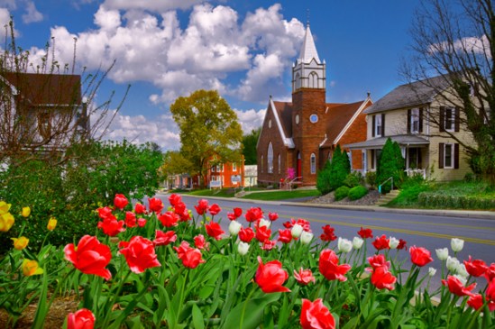I have been a little busy this spring doing mulching and spring cleanup and subsequently I have not had time to look for spring scenes. This last week has been popping with color so I did manage to capture a few to share! This is a local cemetery where my Grandma is buried and last week her daughter, my Aunt was laid to rest here. I happened to glance at the cemetery while driving by and noticed this one section seemed to be alive with color. It is not my favorite view of the church but since this section was the only one with the spring display, I had no other option. For all I know these are all gone by now as I heard a mower somewhere on the back side of the hill.
