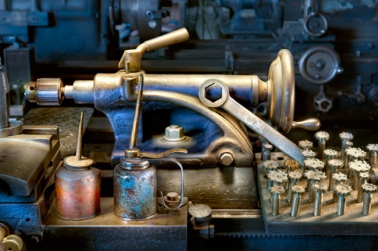 I usually go with one image a day, but I thought Since these two shots are of the same subject, yet look totally different, it might be interesting to see color vs black and white, First, let me say the color shot actually makes no sense to the trained eye of a machinist, but to a layman like myself, it looked perfect. The set of bits on the right were sitting a short distance from this machine, so I decided they must be used on that machine and I proceeded to place them there. I was pretty far into the shot when the owner walked by, and told me they have no relation to each other, but I was already committed at that point. The black and white was the first image I shot using old oil cans, but for some reason it did not work in color, so I abandoned the cans for the bits. Either way, I like both shots almost equally,but I really like the textures in the black and white.