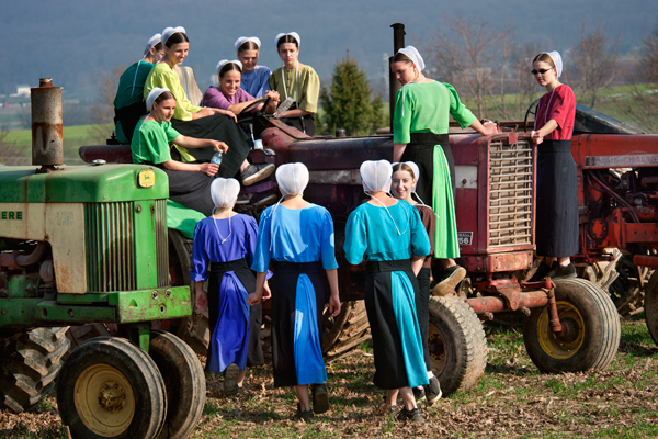 I figured I would snap a few shots and they would stop doing what they were doing after they saw me, but to my surprise they seemed to be totally unfazed by my snapping photos, and it almost seemed as if they were savoring the moment in front of the camera in a way, because as each moment ticked by, the image got better and better as they moved together onto one tractor to make small talk and have fun. Granted I was using a 400mm at a distance, but we made eye contact multiple times as we each laughed to ourselves in the moment. Experiences like this are forever etched in my mind, and provide me with memories of a culture and lifestyle that I find very special and worthy of respect. One thing I have seen countless times with the Amish,is the fact that they are more satisfied with simplicity than we are with every gimmicky gadget that occupies our time. After I left the spot, I kept thinking I would have loved to talk with them, listened to their perspective on things and even offer them prints, but I realize we come from two different worlds and even though they tolerated me, that was only because we were in a public venue that day.