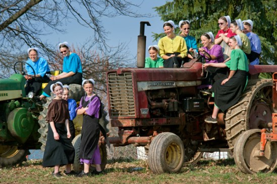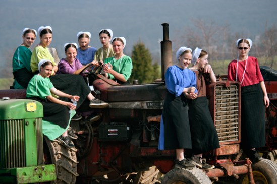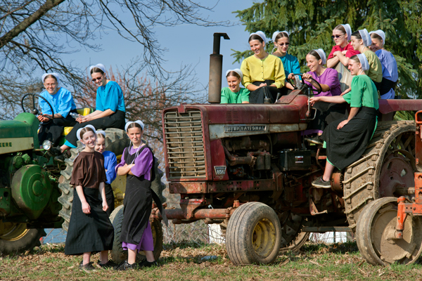 Well no sooner did I think that, when I notice a small group of Amish girls get up and head in that general direction. I immediately began moving behind a row of parked cars in the direction of the tractors in the hopes of getting one good shot before they noticed me. I stayed below the radar for a few minutes watching to see where they were going and to my delight,it was the tractors. As the group reached the tractors, two by two,they paired up on their own tractor and began goofing around, and having a good time with each other. They acted like they were plowing, driving, racing and even made putt putt sounds at one point. I quickly snapped a shot, and thought to myself, this is one of those moments that I cherish as a photographer and was so grateful to be there in that moment.