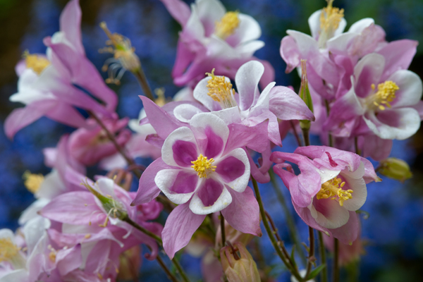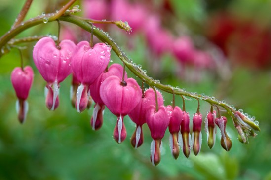 After a bit of searching on the net, I found the name of these delicate flowers that are growing in our garden, and they are called Bleeding heart-candy hearts. These were shot this past weekend right after I took the hosta image yesterday. They come in a variety of hues from pink to purple to magenta.