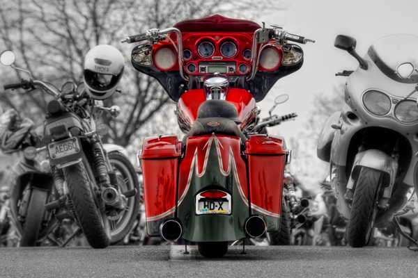 This past weekend was a little on the cool side and this Harley that I photographed at a motorcycle gathering was on the cool side as well. I heard the rumble of cycles while I was shooting landscapes, so I followed them to a rally of sorts,where there were cycles of every shape, color, style,and brand. From Harley’s to sport bikes to every style in between, there were countless cool machines to check out. I left the color on the Harley only to separate it from the rest a bit. The second photo shows what I understand are referred to as ape hangers, and I personally think this would be extremely hard to ride this way, much less make evasive maneuvers if needed, but some really seem to prefer this style. The top shot caught my eye because the cycle sat straight up as it was parked, verses leaning to the side.