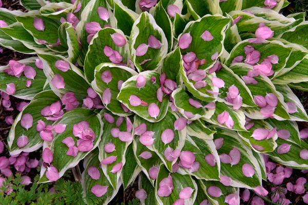 I woke up sunday morning to beautiful spring conditions that beckoned me to get moving and look for some images. I grabbed the camera, a lens and my tripod and walked around our garden in search of anything that said spring. the first thing I noticed was one of our hosta was covered with freshly fallen pink petals from what my wife thinks is a flowering crab apple tree we have.The tree is in full bloom right now,but overnight rains knocked a good number of petals to the ground, and helped adorn the hosta in delicate petals of pink. The soft light of an overcast morning, provided the perfect illumination to capture this graceful scene.