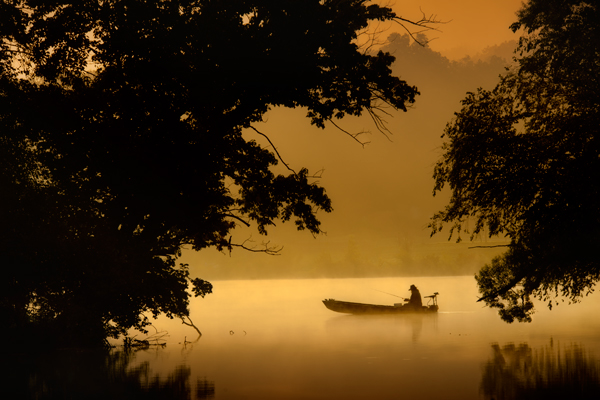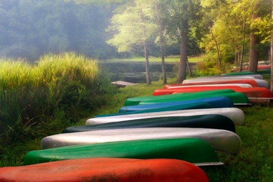 Misty morning canoes