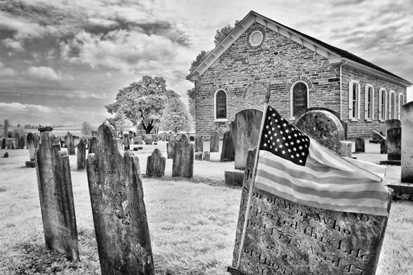 I shot this infrared image this past weekend at a local chapel and cemetery.The flag was caught on the stone,and I assume it had blown there. Wish I could have seen the mans name, but when it comes to cemeteries, I never touch anything out of respect for those interred there. The marker on which the flag is attached says war of 1776,and the date he died read 1778 on the stone.