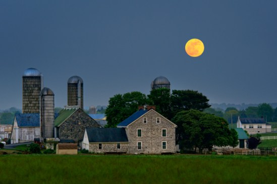 This is a shot of the so-called super moon from this past saturday. Went out with two friends to shoot this thing, and due to haze, we never saw it in the sky till it was too high and slightly smaller looking. It’s an okay shot,but nothing like it might have been at the horizon, and zoomed tighter. This moon was supposedly 14 percent bigger and 30 percent brighter as it made its closest approach to earth. The key to getting the biggest moon is to find a subject far away,so you can use your strongest telephoto to include the moon and something interesting together. Had the conditions been crystal clear, and the moon had risen between the silos,I could have zoomed much tighter and had a much larger moon.