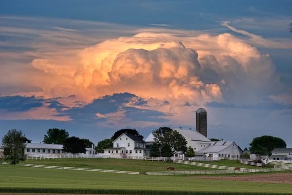 This image was taken this past weekend as I drove around in search of scenic shots. The day started with clear blue skies and ended in grand fashion under dramatic clouds, which caught my attention and had me heading out to peruse the back roads. The sun stayed hidden most of the time, but as I stopped to debate shooting this farm scene, it suddenly burst forth illuminating this farm with a shaft of light, which had me scrambling for the tripod. It lasted maybe two minutes, lighting up the farm against the brooding sky.