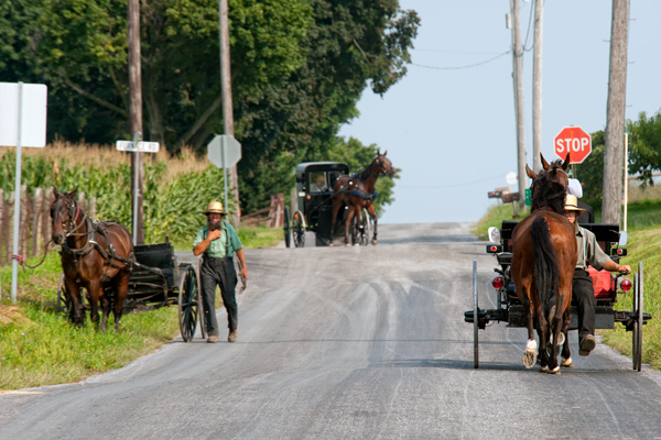 A morning dominated by fog and low light created a tough set of circumstances for shooting anything that was moving. I had been searching for something to shoot on this sunday morning and had no luck,so I decided I was just going to compose a shot and hope something would come by to finish off the image. The Amish head to church at each others farms on sunday mornings from about 7am up till just before 9am,when the service seems to start,so after 9am there is no more activity on the roads. I set up on this back road at 815 and decided at exactly 9am I would call it a wrap.For 45 minutes there was not one single car,buggy or anything else on this road,and I was sure it was one of those mornings that nothing was going to pan out. I was watching the laptop clock and 3 minutes before pack up,I heard the sound of horse hooves coming. Buggies never travel this late in the morning,but here came two late ones,which allowed me one chance to get this shot,which thankfully I did. I think there was a little set of eyes peeking out the back as a hand pulls the canvas back a bit.Shot from my truck roof and connected to the laptop.
