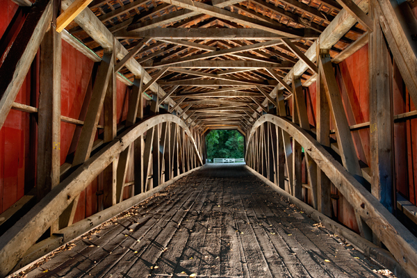 This is the interior of a local covered bridge that has been closed for over a year due to damage from tropical storm Lee last year. Not sure exactly what the problem is,but if you look at the exterior,the bridge has a slight bow to it. This bridge sits approximately eighteen feet above the creek,but last years flood was an extreme one that hopefully wont be seen for another hundred years.I used flash to light the interior in an attempt to show the intricate construction that goes into these beautiful structures. This bridge was built in 1867 at a whopping cost of $4,500 dollars. The arch design is credited to inventor Theodore burr,who lived around the early 1800s and was a cousin to Vice President Aaron Burr.