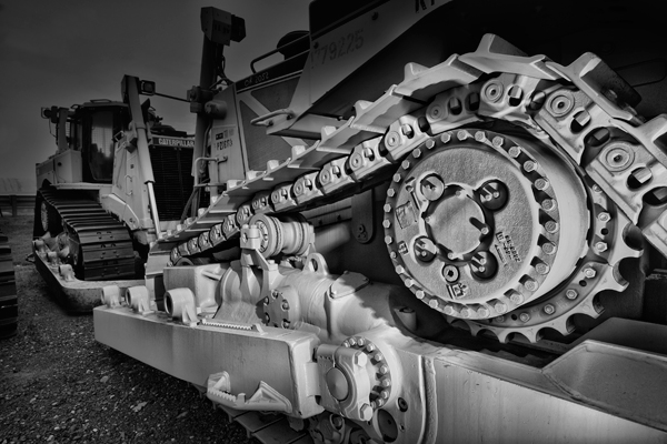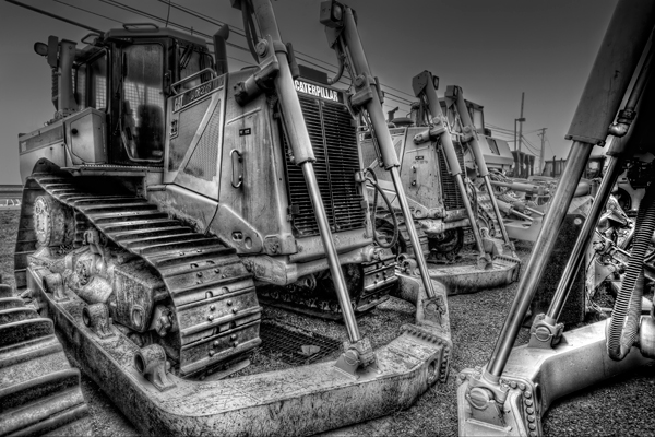 This digger could take a serious bite out of almost anything it dug its teeth into. I lit this in overcast conditions with a flash and the bucket alone was lit with one series of eight flashes on multiple exposure on my camera. I set the shutter speed to the highest allowable on my camera at a 250th of a second and set the camera to record 8 exposures on one frame. Eight shots were just on the edge of possibilities because each ambient exposure built up on the frame as I shot,so you have to watch for overexposure when you do that many on one frame. My usual technique is to overlay separate frames,but multiple exposure allows flash to build up on the frame with each blast,so you effectively can make your weak flash more powerful.I wish they used this thing to give you a scoop of mulch for landscaping,although my trailer tires would explode when it dumped the bucket.