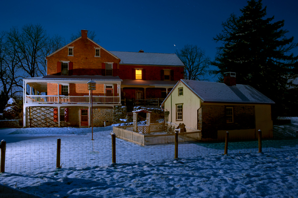 This image was taken after yesterdays shot as I headed home and noticed the local historical site was conducting lantern tours. It was shot around eight o’clock at night and had I been able to get there at dusk,it would be even nicer. Again,the full moon lit up the sky like I have never seen before and actually allowed me to get color in the sky after dark.The lanterns sit waiting to be picked up by tour participants who go building to building at the Ephrata Cloister learning about the past. A fresh snow earlier in the day made for a very special night for guests.The Cloister is one of Americas earliest religious settlements and was founded in 1732.