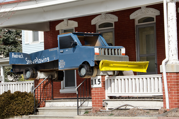 Sometimes you just have no explanation for things you see and this redneck snowplow is one such instance. Perhaps someone has too much free time or just figured they would beautify their front porch with a homemade plow made of cardboard. Whatever the reason, it certainly makes you do a double take as you drive down main street in this local town.