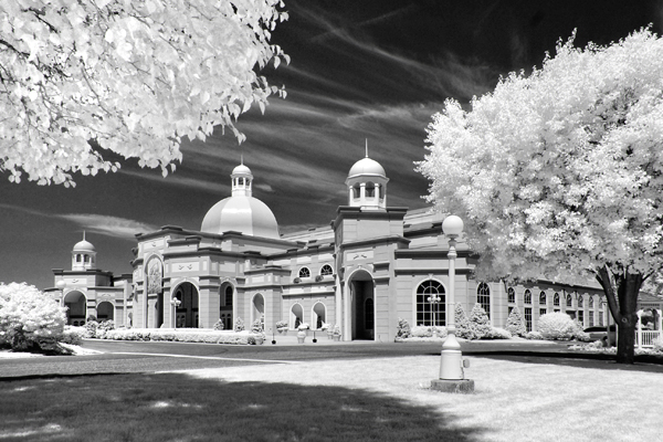 Is this the palace of an Arabian king, a temple along the Nile river, or the final resting place of some middle eastern ruler? Well none of the above,it is actually the home of Sight and Sound Theatres,which is the largest faith-based theatre in the country and it is in Lancaster county. Their live recreations of Biblical stories are unparalleled,and years ago I saw their production of Noah,which included countless live animals and a huge ark. Google it to see the stage. Shot both images in infrared and the sky in the top one is awesome in my opinion.