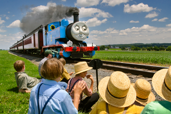 Thomas the tank engine made another appearance at Lancaster counties Strasburg Railroad recently and I was lucky enough to be driving by on a side road when I noticed this group of Amish boys waiting for the train to come. The entire crew of youngsters had just placed multiple pennies on the tracks as I was getting out of my car,and if you look closely at the boy in the pink shirt,you can see him looking at his penny on the tracks as Thomas approaches. I walked up behind them with my attention looking down the tracks so as to act uninterested and as the train got closer, I got into position to capture them enjoying the passing locomotive.