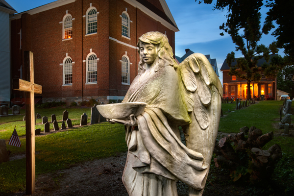 This image was taken this past weekend in the town of Strasburg,Pa, and was shot at St Michael’s Lutheran church, which dates back to the early 1700s. I had been driving around looking for scenery and the evening was a little lackluster so I decided to stop and light paint this scene.The Angelic statue was lit using a small flashlight to bring out the details and the rest of the scene was illuminated by flash.