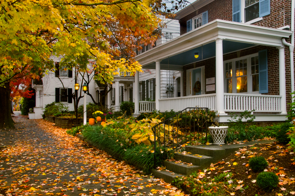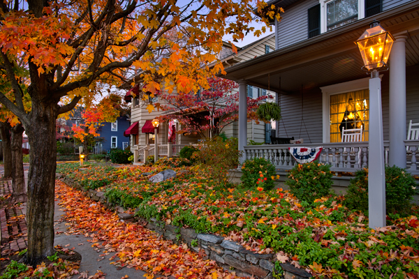 This image was taken this past weekend across the street from the Halloween home I posted yesterday, and after the three lamp posts came on,I decided to scoot across the street and get a quick shot. Between the lights,leaves and lovely homes,I could not resist capturing it. Again this was taken in Americas coolest small town,which is Lititz,pa.