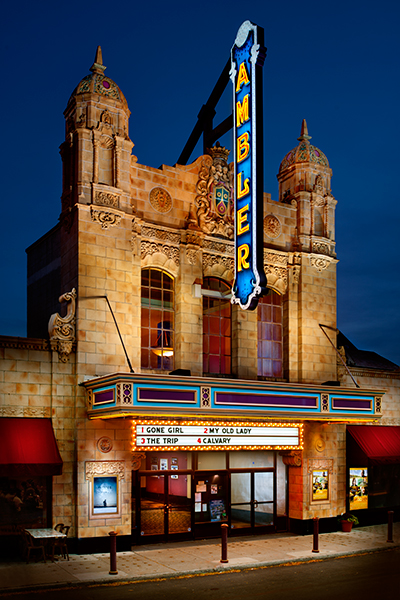Built in the former rear of the orchestra seating area are two ‘black-box stadium seated auditoriums, equipped with digital surround sound. One auditorium has 150 seats, the other has 110 seats. The Ambler reopened February 28, 2003, with those two auditoriums showing the movies Nicholas Nickleby and Real Women Have Curves.