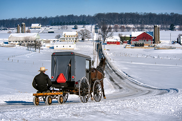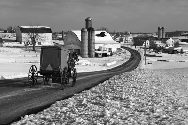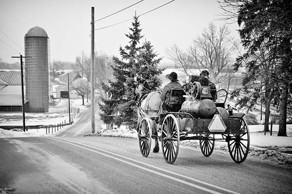 This Amish buggy heads down the road enjoying the beauty of a late winter storm.This storm dropped between 8 and 12 inches of snow,which laid on trees for almost two full days thanks to very light winds. I set up my tripod along the side of the road and waited for buggies to pass as they headed to the seasons first mud sale,and I chose this spot because of the gorgeous background. If you look real close you can see the added bonus of the little girl standing up front in the buggy to enjoy the snowy view,and sometimes the simplest things are the most memorable.