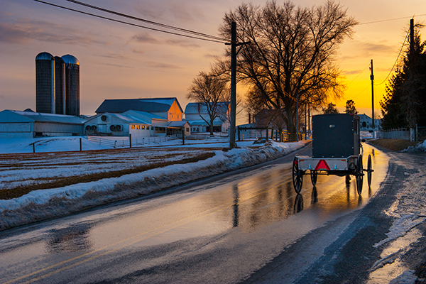 This less than spectacular shot was taken on my way home the other night and the wet road reflecting the color in the sky is what caught my eye at first.As I climbed out of my truck,I heard a buggy coming and figured I would silhouette him in the bright section of the road.The setting sun was still shining on the barn,which contrasted with the cold snow.This has been a rather cold winter with the average temperature for february being 9 degrees but I still would have liked to see more significant snow storms for photos. My hope is the extreme cold somehow killed all the stink bugs waiting in my shed but from what I have read they are pretty good at surviving bitter cold.