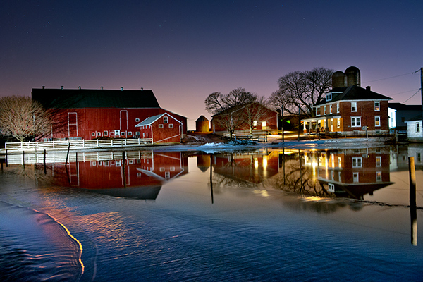 The top image was captured at sunset as I stood in freezing water in my hip waders for almost 30-45 minutes. My friend was along and he bailed after 15 minutes but I knew what I wanted and that required waiting.The reason I had to wait is because I love when buildings are lit inside and have the lived in feel,and the lights from the windows would not start to record till it was pretty dark. I learned on this shoot that even if your eye can’t detect there are lights on,your camera can,and as I was shooting this the two brightest windows were clearly lit but as I stood in the water I kept thinking I wish they would turn more room lights on. well as my exposures started to get into the 30 to 60 second range,I started seeing there were actually lights on in other rooms but it took the long exposures to pick them up. As I finished in the dark and had to walk through the foot deep water, I kept thinking I hope there are not any huge holes I can’t see that are more like three feet deep.