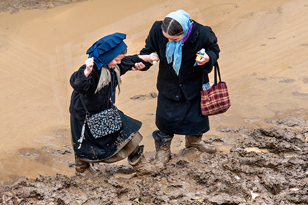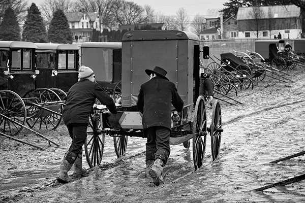 Amish boys bring their wagons to the mud sales and offer assistance to buyers who need to get purchases to their cars from the auction site.The popularity of the mud sales means parking is hard to come by and walking a half mile or more is not unheard of. For me,I get there around 530 in the morning,get the best parking available and then sleep till the sun comes up. The boys make a few dollars off each patron and the english as they are referred too, love to have the boys help, and for many it is their closest interaction with the Amish. Each worker tries to stand out, and customizing their wagons with signs is all part of the fun as shown in the middle image.The bottom photo shows how muddy it usually is and shows the boys hauling practically anything.