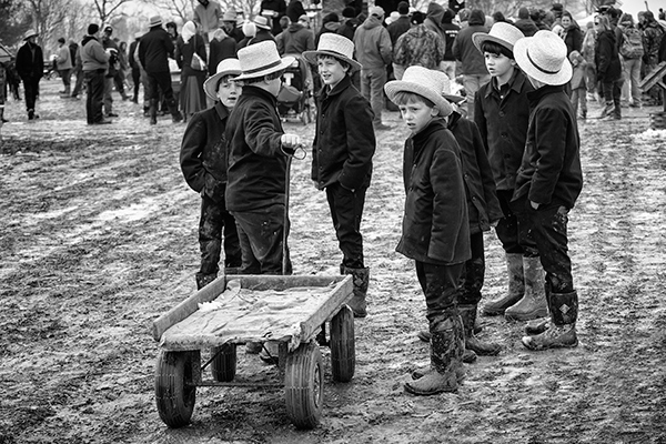 This is one of those fleeting moments that lasts just long enough to get one shot and then its gone.These six Amish boys were intently looking at an auction item that was being bid on at the mud sale and I had enough time to see the moment,raise the camera and snap one frame till they all lost interest and their attention went all over the place.