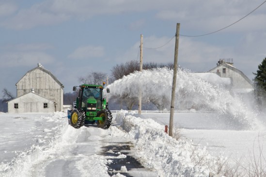Heavy drifting snow called for the cavalry to come out and do some serious snow moving,which this team of john deere tractors handled with little effort. My would I love to play with one of these toys.