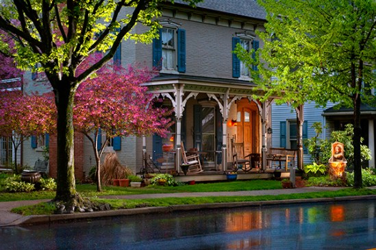 A pair of lovely pink trees provides the perfect complement for this beautiful old rural church. For some reason I thought I could improve on this shot by going back in the rain. Problem was it was pouring,blowing 20 mph winds and even with a huge golf umbrella,it was impossible to keep the lens dry.I had the umbrella bungeed to my tripod with a steel post attached to it,and I turned away for a moment only to see my umbrella take flight.Thank goodness my tripod and camera stayed upright. I was mumbling to myself how ridiculous this was to attempt,and it was an experience I won’t soon forget.
