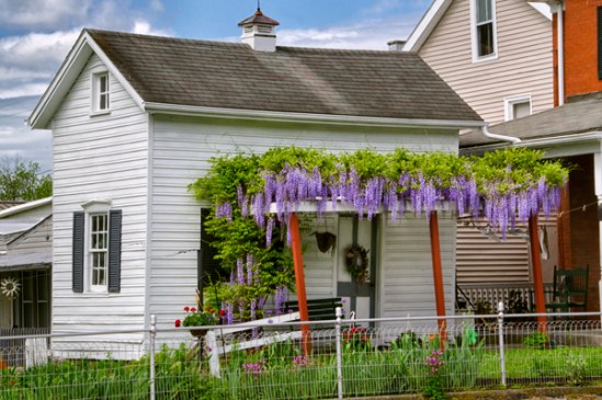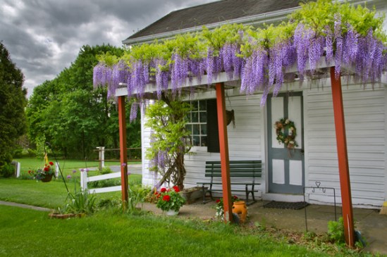I missed shooting this lovely Chinese Wisteria last year and thankfully I noticed it this year just in time to capture it. I always referred to this as grape hyacinth for some reason, but looking it up on google proved that was way off. Funny thing is we have grape hyacinth at our house and I knew it was called that,so go figure. The quaint little outbuilding was the perfect place to grow this gorgeous plant and everything works together.