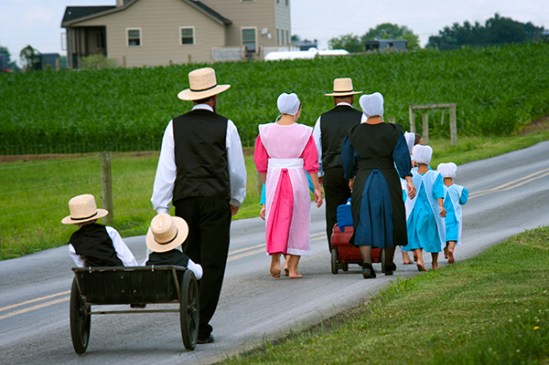 This morning includes one of those times I will remember for the missed opportunity. I decided to drive around Amish country looking for images and as I came down this road I was struck by this family heading toward me. There are actually 4 young ladies dressed in the most beautiful shade of aqua blue in this shot and mom in a contrasting pastel pink. I was at the end of a farm lane watching them come towards me and it was a one in a million view because all four little ones were walking side by side,but do you think I could raise the camera for a shot? They were all staring directly at me wondering why I was there and I just could not manage to snap a picture of them from the front, but this image of them after they passed is still kind of neat,so all was not lost.
