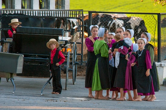 This Amish father and his five sons caught my eye as they headed home from heritage days. All the boys were dressed identical in blue and the view from the side was amazing but right after I snapped this shot at the stop sign,they turned right and I passed them to go further up the road to try for my dream shot of them. I went about a quarter-mile ahead,found an empty parking lot with bushes to kind of hide my truck a bit and focused in anticipation out my window. After two minutes I realized they went in the lane at the farm right after the stop sign so this image is all I got.