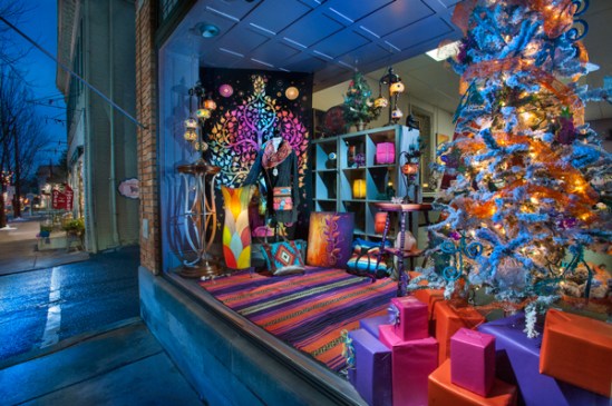I will be sharing my images from the town of Lititz,Pa over the next week or two and they are all done using flash and light painting techniques. I go for a somewhat nostalgic feel and my hallmark effect is the cool versus the warm. This shot features a yarn shop that had a sheep in the window and a tree with knitted hats and scarves.