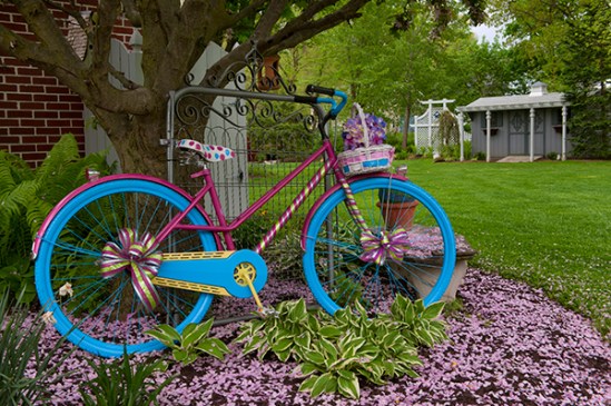 Still not finding the desire to go out shooting these days and I certainly cannot remember a spring where I have had so little ambition to photograph the spring color? This wonderful little friend of mine called depression has been gnawing at me the past two weeks again and has me in a very negative disposition concerning life in general. For me personally, it is a very isolating condition and I would rather sit alone in a room and try to get past negative thoughts on my own than to hear someone say they are thinking about me, because deep down I do not really believe there are too many people who really truly care one iota about my battles and to be quite honest, why should they? I am always amazed how I talk to some people who have incredible problems and they handle it with ease, but I struggle trying to just go day-to-day. Thank goodness I have not shot much lately, because every other post on here is me whining these days. On a positive note, this bicycle is part of a project I am working on and this is my first creation, which I was taking through my back yard and I decided to stop and take a shot with our flowering tree that was dropping pink blossoms. In the back are the arbor and shed details I made as well. The arbor has 12 foot 6×6 timbers and I still remember digging 4 ft holes and trying to lift the posts to drop them in the holes.