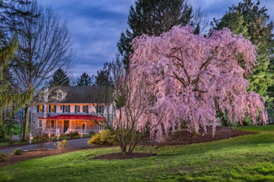 The owners of this property were kind enough to let me try and capture this spring scene, complete with a magnificent pink flowering tree at center stage and a lovely old inn in the background. The current owners have taken what was once a neglected property and transformed it into a real gem that now stands as an example of what can be done when the effort is put forth.
