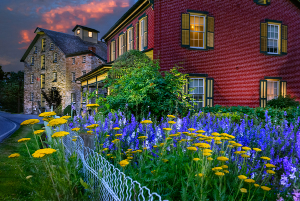 This old mill and farm house have been maintained as they were originally in the good old days and are open to anyone wishing to see history close up. I had the opportunity to photograph this old mill years ago and it contains some really cool old machinery. The caretaker shared with me that the entire mill operation would start up with the simple pull of one lever which would open the spillway and mother nature’s water power would get the process rolling. The garden incorporates flowers and plants that would be found here.