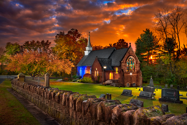 I found this church a little ways away on my travels and shot it at least three different ways over several evenings. This wide angle shot encompasses most of the curved stone wall. I met the pastor and he was more than accommodating in helping me get the main shot I was after, which is not this one. For this shot I am almost on the road behind me and there is a stop sign about 4 feet to my right on a second road. The foliage actually hung around for several days while I tried to capture the place. I hope I can remember to check this out in the snow this winter. They currently have the main wall lit in blue and gold for Ukraine but the pastor hinted they might do red and green at Christmas so keep your fingers crossed for that.