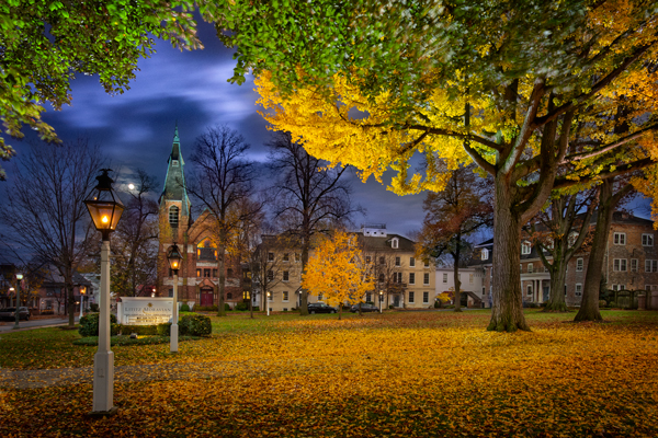 Yes I realize the moon does not jump off the page at you but I think it is pretty awesome as a small piece of the grander scene. From the Historic old Church and its amazing steeple to the lamp posts glowing, to the Ginkgo in all its impressive color whether on the tree or on the ground, I am very happy with the way this image turned out. I love the blue in the sky and yellow on the ground,the Church rising to meet the sky and just the peaceful feel the image imparts!