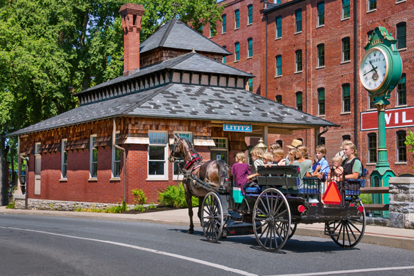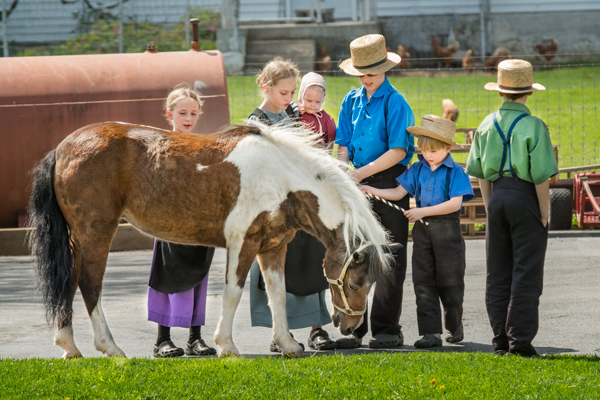 Have you ever been going somewhere in your car and you see a vehicle headed the other direction that for some reason catches your attention, then an hour later or so you pass the exact same vehicle going the opposite way and you realize it’s the same spot you first crossed paths? Well this has happened to me on more than one occasion and each time I think what are the chances that this would occur and I ponder if our paths are somehow intertwined? That’s a bizarre intro into today’s photo but its similar yet different. I recently had to run and get some things about ten miles from home and on the way I passed this buggy going the other way on a back road and it caught my eye but I had no time to turn around. As I kept driving, this buggy I had passed kept popping up in my mind as I replayed over and over the opportunity I missed. So I got to the store, got my things and decided to take another route back home just to look for anything interesting I might come across. As I am coming through the town of Lititz I see the exact same buggy and we cross paths at literally the best possible spot for me to capture a nice image. It is the entrance to the Lititz Springs park and traffic is very steady along this route, but in a moment of everything coming together, the buggy turned into the park right in front of the pretty train station, and Traffic was forced to stop for a flashing pedestrian crosswalk, so I had maybe 30 seconds to frame and capture this image before the crosswalk was clear and I was forced to proceed. Sometimes I experience these seemingly impossible circumstances that present themselves in the most amazing way. There is almost no other spot along this part of town I could have captured them where it would be nothing but cars, signs, businesses in the background etc etc, but I was blessed to have this opportunity presented to me. Oh and by the way There are exactly twelve children I could count in the buggy along with their father at the reigns. They were headed for a picnic in the shady park.