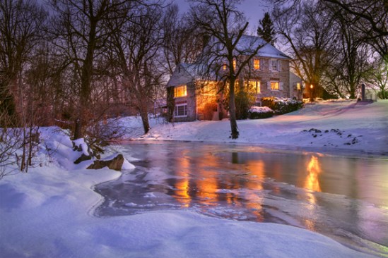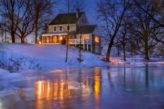 This is another night of late night shooting after a snowstorm had passed. The normally busy road was all but devoid of traffic on this evening. I even shot several shots with my tripod set up in the middle of the road! This is one of my favorites from this winter. I can imagine family and friends on an old sleigh going down the road all the while sipping hot chocolate!