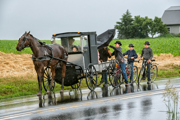 I saw this family headed down the back road and went ahead to Find a more uncluttered background. As they rounded the turn past where I was waiting, a guy on a bike came by and gave them a little wave. These are Mennonites which have a strong population here in Lancaster county.We also have a large contingent of Amish population here as well.