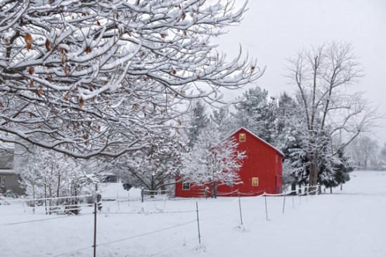 This red barn caught my eye from a Ridge I was driving on because the sun was shining on it. The only problem was the sun completely disappeared before I made it there. I knocked and got permission to get a shot and this was the best I could muster! The way the trees and bushes were positioned prevented me from finding a view that included the whole barn with any nice views of the snow.