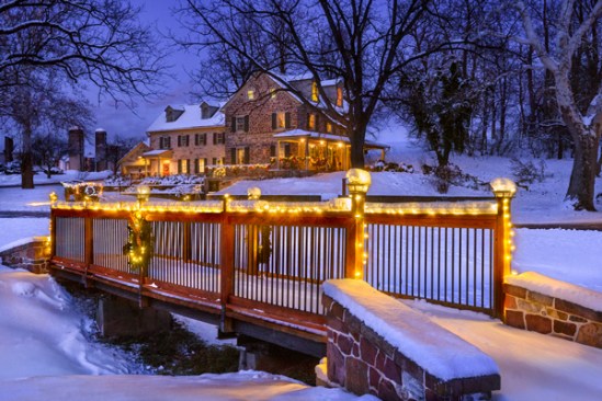 This is an old Iron Furnace production site that has been transformed into a community park. It is called Poole Forge and this old home was in bad shape until a serious effort at restoring it was made. This bridge is a recent addition and it was all decked out in Christmas lights for the semi annual Christmas at the Ironmasters event which I also had a display at this year! We were blessed to have a decent snowstorm drop 4-6 inches during the show which was awesome! This image was actually taken a little later than I would have liked because the light was really fading which meant the balance was off and contrast was rearing its ugly head. The lights on the bridge were flaring due to the longer exposure which would have been avoided had I attempted this shot a half hour earlier. There is a point when shooting subjects like this that the ambient light balances with the Christmas lights but it doesn’t last long. To see for yourself, set up a tripod before dusk and shoot a series of bracketed exposures every few minutes. You will start out barely noticing the Lights, then slowly but surely the ambient light will start to dim and as it does the bulbs effectively become brighter to the point where the exposure for them and the exposure for the available light is balanced!