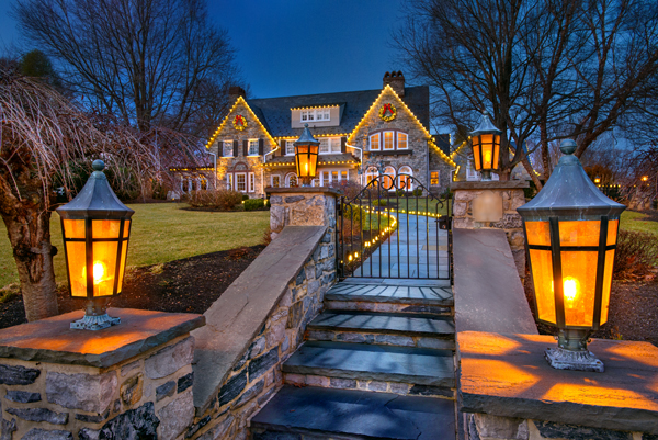 Christmas Eve we had a family get together at my brother in laws house and while I wish this was his home, it unfortunately is not! My wife suggested we take her parents along because her fathers night vision is not so hot and when he does drive I am praying he stays in the slow lane because there is usually someone road raging a few feet off his bumper in the passing lane. Anyway I digress back to the Christmas Eve get together and the evening was winding up, so as we go to leave I say anyone up for Christmas lights? The in-laws said sure and I proceeded to head to a beautiful neighborhood I had driven through in the past and the combination of Gorgeous homes and Classy decor made for a lovely evening drive. This particular home was one my mother in law really had high praise for and I was impressed as well so I went back Christmas night and captured it. The four lanterns at the entrance was an element I wanted to emphasize so the wide angle allowed them to show prominently in the composition. There are more lights than shown here but the lanterns added that extra touch. The owner did swing by to ask what’s up and I said just capturing Christmas scenes and he was understanding and it all worked out. The more I looked at this place, it suddenly dawned on me that I had shot this place 15-20 years ago but trying to find that shot is not going to happen. That might be going back to the days of film? Snow would have been the added piece de resistance but someday maybe!