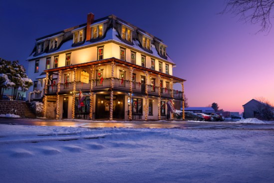 This old Inn is located right beside Railroad tracks which you can just make out under the snow. I shot this tonight after we had a couple inches of snow cover the area last night. I arrived here later than I wanted because there were heavy patches of fog in the valleys which sidetracked me a bit, so I may revisit it sometime in the future.
