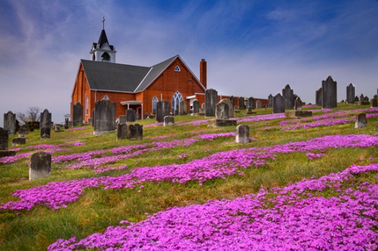 I have been a little busy this spring doing mulching and spring cleanup and subsequently I have not had time to look for spring scenes. This last week has been popping with color so I did manage to capture a few to share! This is a local cemetery where my Grandma is buried and last week her daughter, my Aunt was laid to rest here. I happened to glance at the cemetery while driving by and noticed this one section seemed to be alive with color. It is not my favorite view of the church but since this section was the only one with the spring display, I had no other option. For all I know these are all gone by now as I heard a mower somewhere on the back side of the hill.