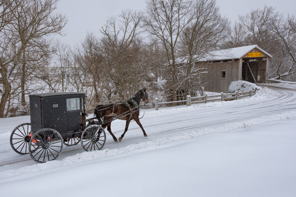 So I was almost done when I heard a voice 30 feet behind me say, ”okay lets move it on now”? I usually stand my ground when someone thinks they are going to force me to listen to their orders but this guy was different and asked in a nice friendly tone. I gave him a puzzled look and he informs me there was a funeral here today? I said I thought it was a wedding and he said I thought that might be the case. I said sorry and made a hasty departure. He must have been a driver who hauls Amish around in a van because he said he never saw anything like this before. Anyway I still like the image I captured on this snowy winter day and the men were laughing as they were pushing the cart so that didn’t exactly help in my decision to shoot.